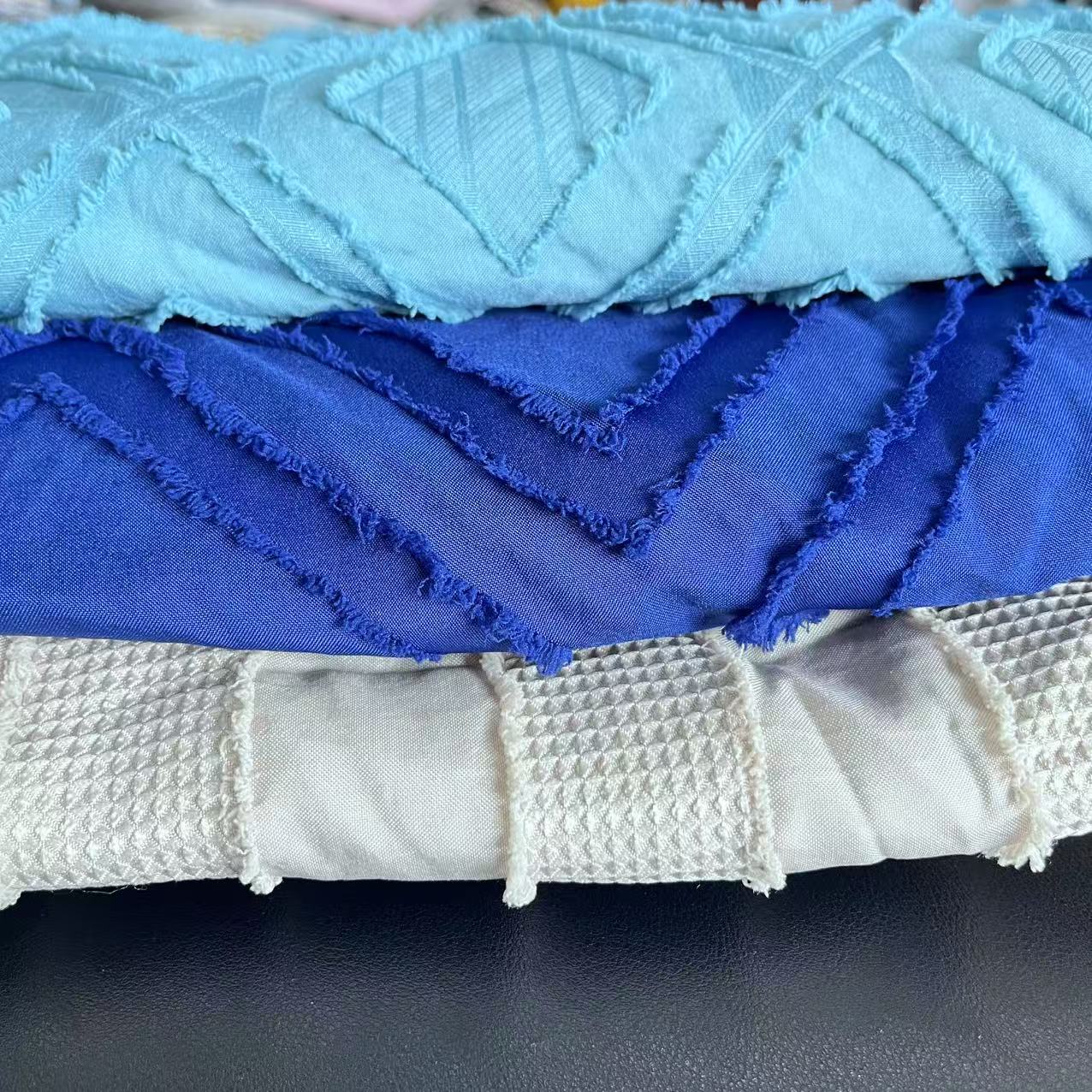 في الوقت الحاضر، تمتلك الشركة المعدات التالية: 5 مجموعات من آلات التمدد و7 شاحنات تزييفها. نحن نتعامل بشكل رئيسي مع نسيج البوليستر الفارغ، ومواصفات مختلفة من القماش المصقول، والنسيج المطبوع والمصبوغ، والفراش ومنتجات المنسوجات المنزلية الأخرى.